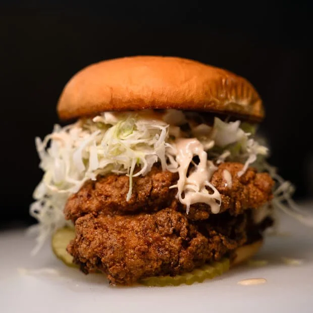 What you get when a Top Chef fan favorite collabs with a MasterChef winner. Chef Michelle Wallace of B’tween Sandwich Co’s bayou-spiced fried catfish + Chef Christine’s Japanese cabbage slaw with creamy ginger sesame dressing = a match made in heaven. Served with pickles on a toasted potato bun. Available for a limited time only.