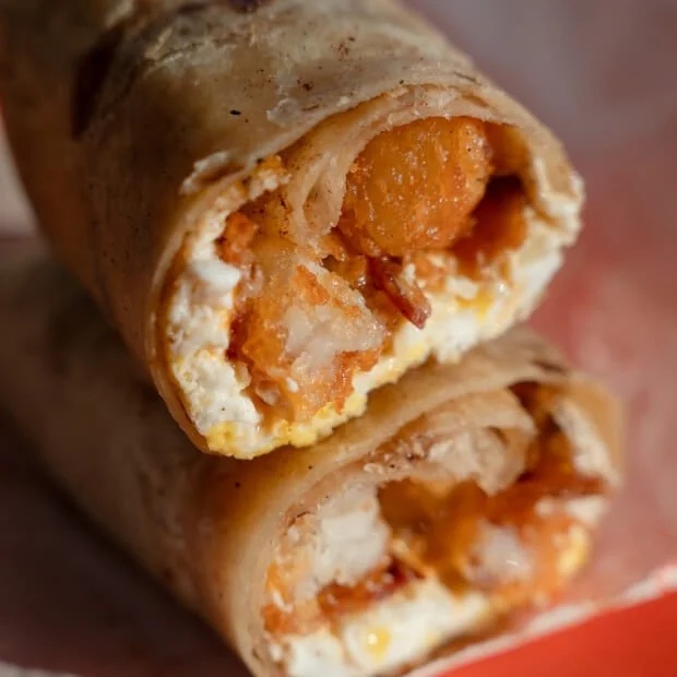 Your choice of bacon or sage sausage + egg, cheese, and crispy potatoes in a flour tortilla. Comes with our house-made green tomatillo salsa or ketchup.